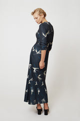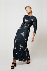 - Robe longue, plissée sur le bas